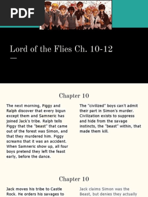 Up to 24 cash back Chapter 10 lord of the flies pdf. Lord Of The Flies Chapter 10 Summary The Shell and the Glasses SummaryPiggy watches Ralph come out of the trees.